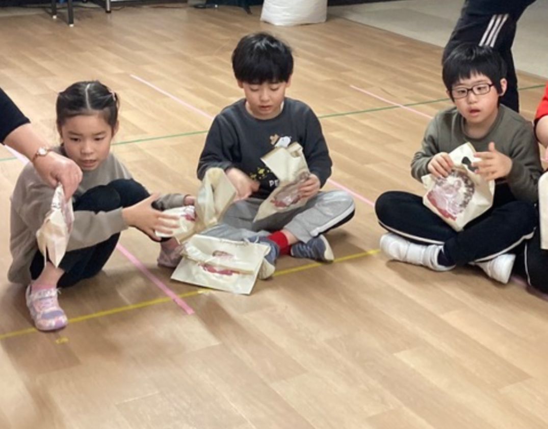 サンタの🎁を入れる袋をバトン代わりに、みんなでリレーをしました(^▽^)