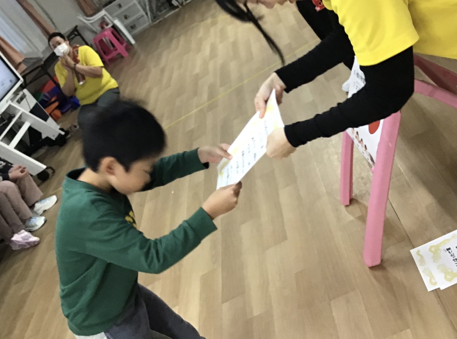 ↑最後に私たちから子どもたちへ【がんばったで賞】を授与しました⭐